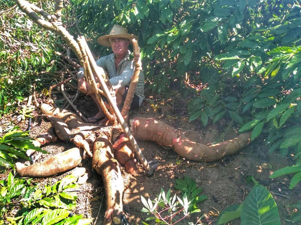 Agricultor é destaque em Vila Pavão após colher mandioca de 64 quilos