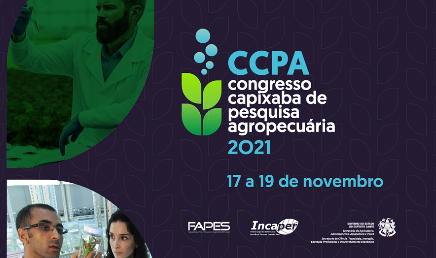 O Congresso Capixaba de Pesquisa Agropecuária (CCPA) 2021 está com inscrições abertas no site do evento. O CCPA é gratuito e acontecerá em formato virtual entre os dias 17 e 19 de novembro, tem como público-alvo pesquisadores, extensionistas, estudantes, produtores rurais, secretários municipais de Agricultura e Meio Ambiente, além de empresários ligados ao setor da agropecuária do Espírito Santo.