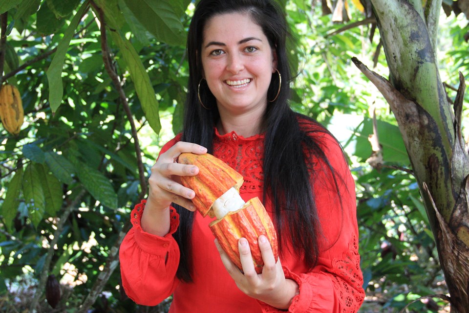 O fruto, que tem alavancado o agronegócio capixaba, vem transformando a vida no campo. O cacau trouxe oportunidades para pessoas como a Nilzete Capellini, participante do Projeto Mulheres do Cacau, da Seag em parceria com Instituto Capixaba de Pesquisa, Assistência Técnica e Extensão Rural (Incaper), que especializa mulheres na prática desse cultivo.