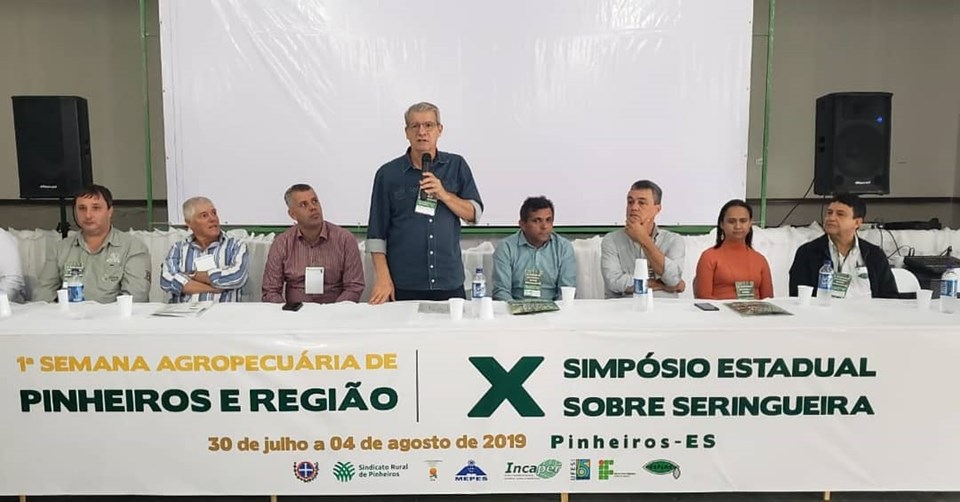 A Secretaria de Estado de Agricultura, Abastecimento, Aquicultura e Pesca (Seag), por meio do Instituto Capixaba de Pesquisa, Assistência Técnica e Extensão Rural (Incaper), em parceria com o Sindicato Rural e a Prefeitura de Pinheiros realizaram o 10º Simpósio Estadual sobre Seringueira, nos dias 30 e 31 de julho. Ao todo, participaram do evento mais de 100 pessoas, entre produtores rurais, empresários, pesquisadores e estudantes.