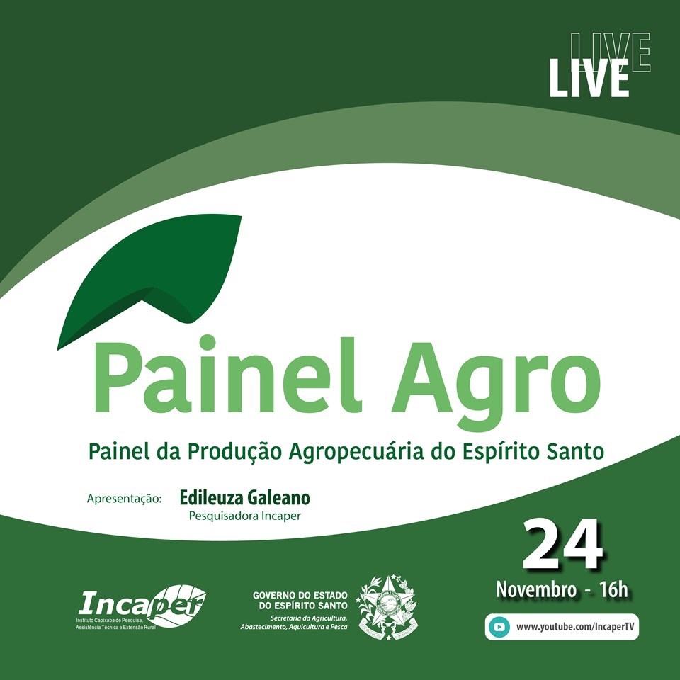 Para acompanhar o Painel Agro, basta acessar o link: www.youtube.com/IncaperTV e/ ou https://youtu.be/UDTYCdZfSDY