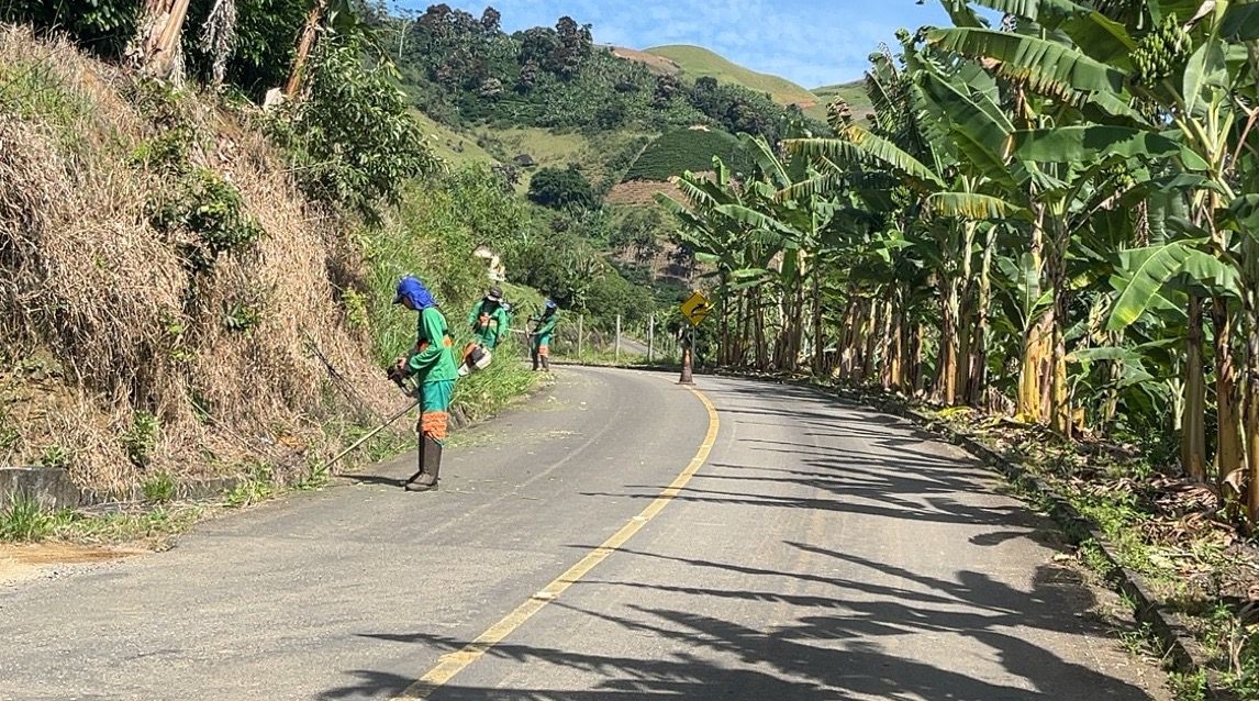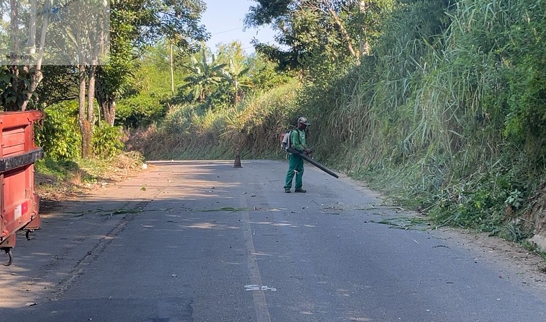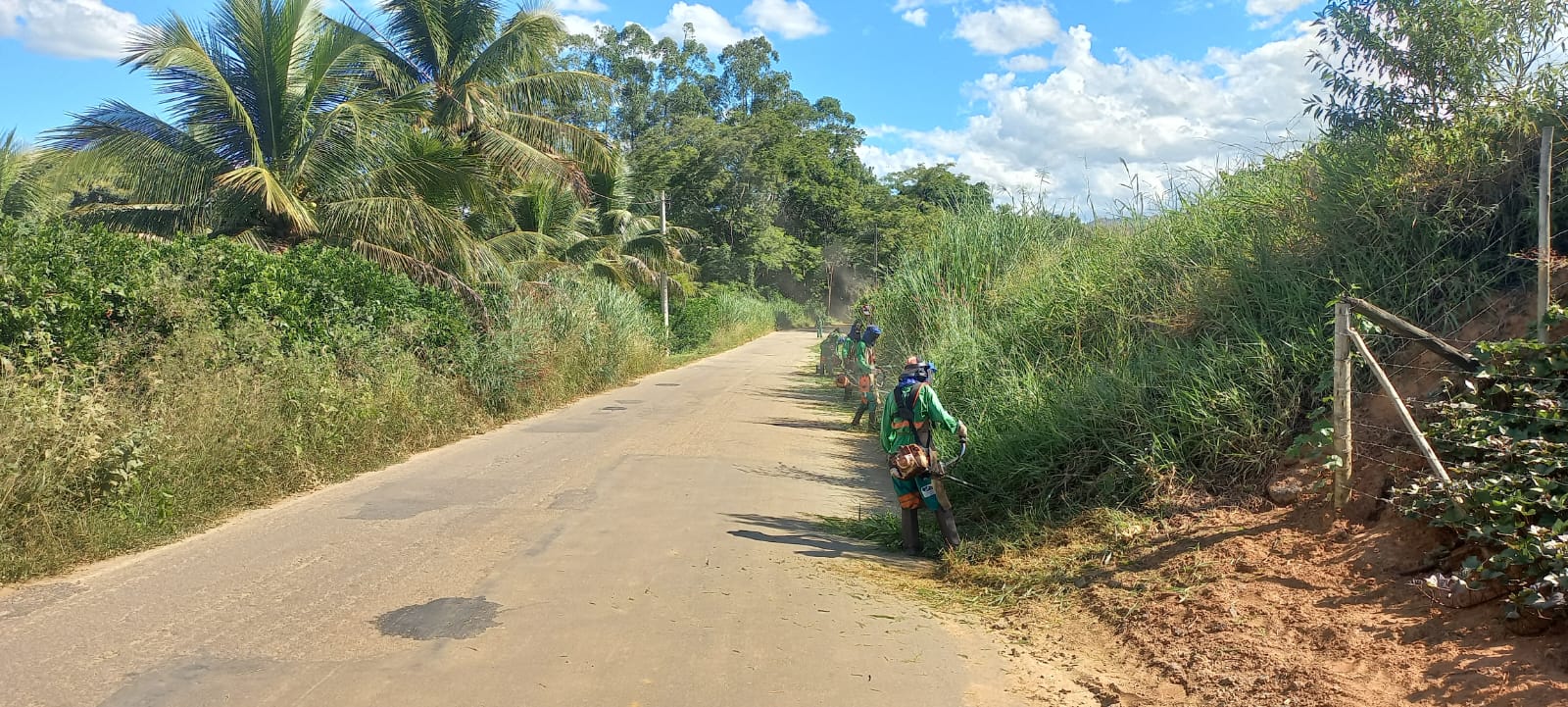 Em Jerônimo Monteiro, foram realizadas ações de roçada, limpeza de dispositivos de drenagem e manutenção de pavimento na rodovia ES-483, no trecho entre a sede e a localidade de Oriente.