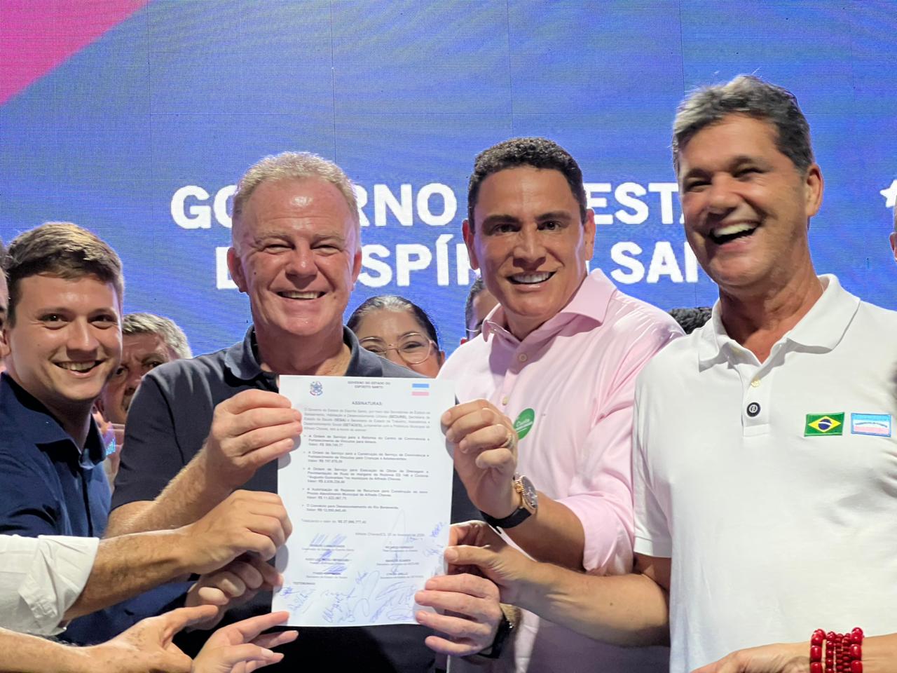 Durante a agenda, o governador Renato Casagrande assinou convênio para o desassoreamento do Rio Benevente, com investimento de R$ 12,9 milhões. A intervenção tem como objetivo reduzir riscos de alagamentos, ampliar a segurança da população e contribuir para a preservação ambiental, beneficiando diretamente cerca de 13,8 mil moradores, especialmente em períodos de chuvas intensas.