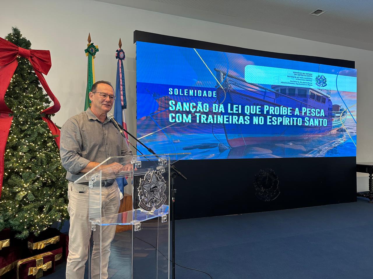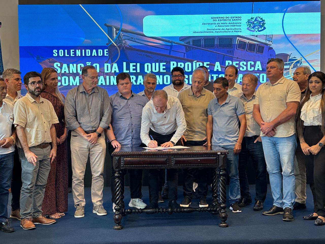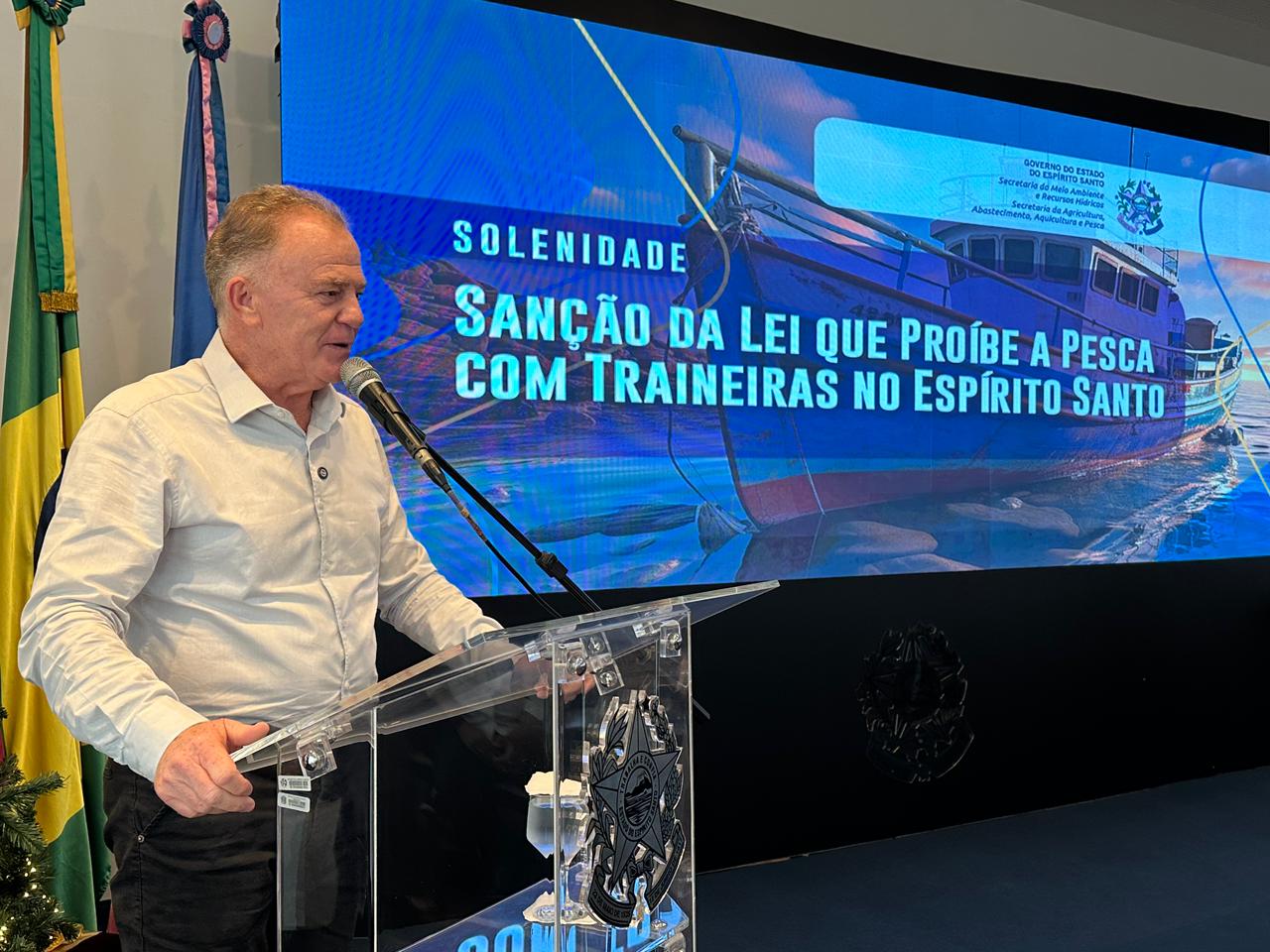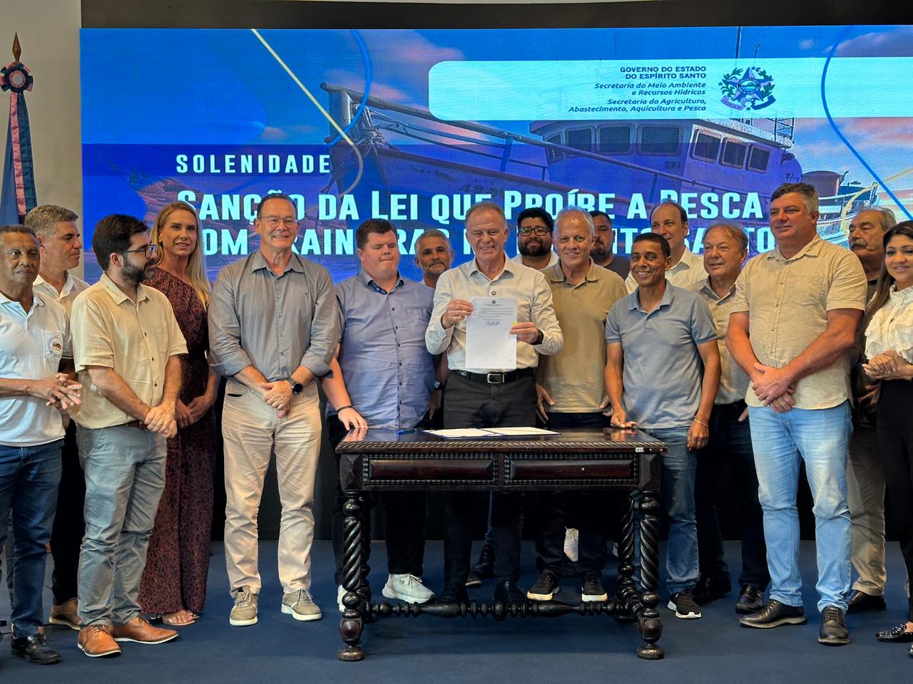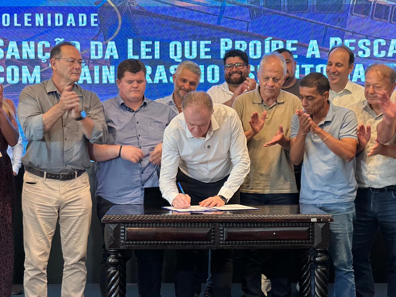 O governador do Estado, Renato Casagrande, sancionou, nesta quarta-feira (07), a lei que proíbe a pesca de cerco com embarcações do tipo traineira nas 12 milhas náuticas do litoral capixaba. A norma estabelece regras claras para organizar a atividade pesqueira no Espírito Santo e proteger a pesca artesanal, garantindo o sustento de centenas de famílias de comunidades litorâneas. A solenidade contou com a presença de representantes de municípios costeiros, pescadores artesanais e autoridades ambientais.