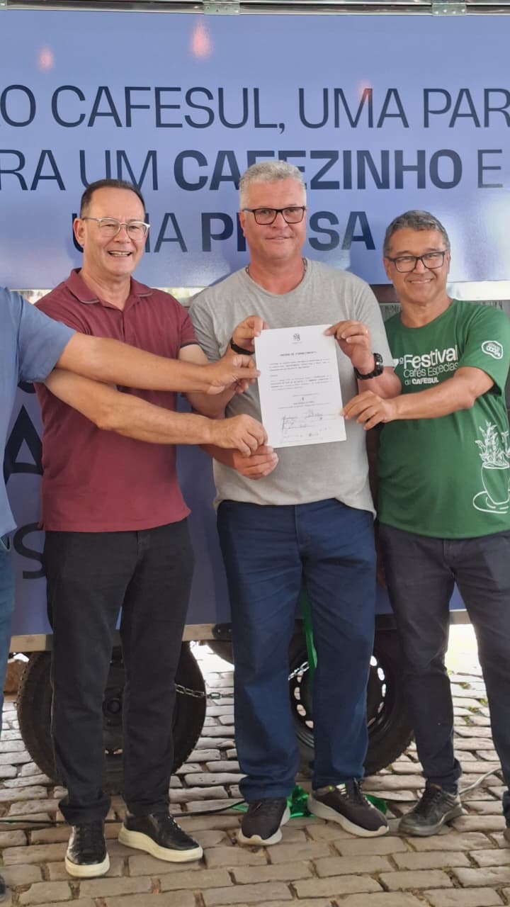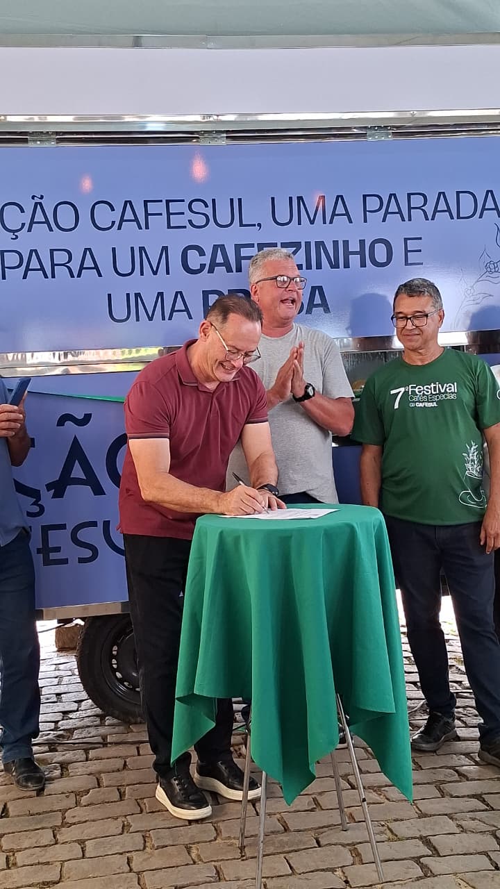 Durante a assinatura, o secretário Enio Bergoli destacou a importância do investimento para fortalecer a cadeia produtiva do café em Muqui e apoiar os produtores rurais.