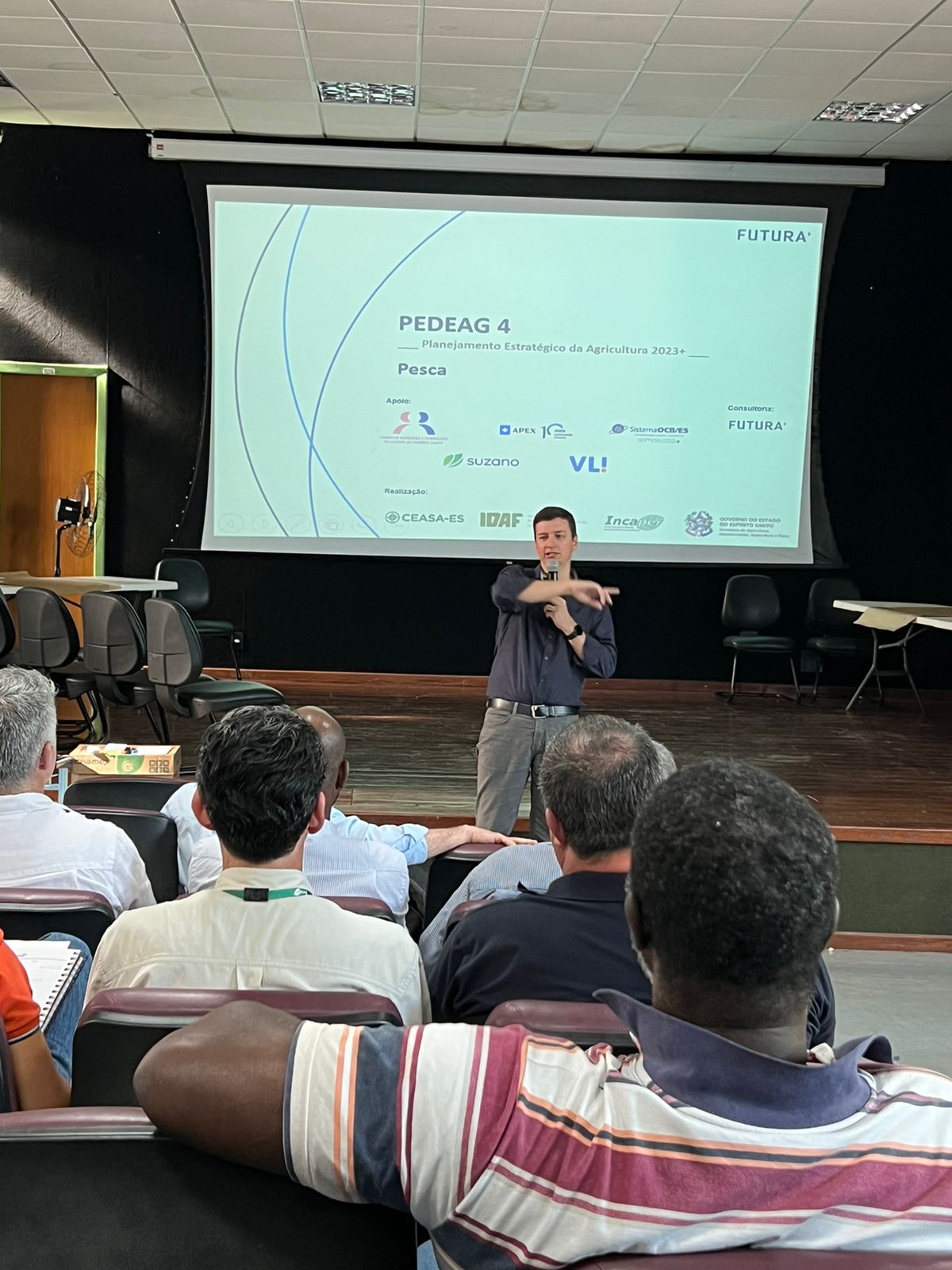 “O Pedeag 4 e o projeto Pescamares são complementares e a base para a construção do Plano de Desenvolvimento da Pesca Capixaba, de modo participativo com as comunidades pesqueiras”, ressaltou o palestrante e coordenador de Pesca e Aquicultura da Seag, José Alejandro Garcia.