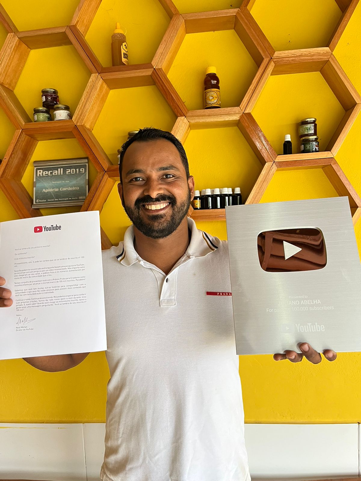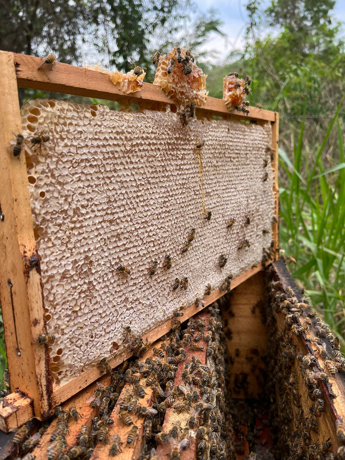 “Estamos construindo uma agroindústria para beneficiamento dos nossos produtos com certificação Estadual pelo Idaf. Trabalhamos com abelha europeia africanizada Apis melífera, abelhas sem ferrão uruçu amarela, mandaçaia, jataí e mirim. Produzimos mel no favo, mel puro, extrato de própolis, cera de abelha, pólen e enxames. Comercializamos os nossos produtos presencialmente ou pela internet para clientes e empresas de exportação”, comentou Juliano Abelha.