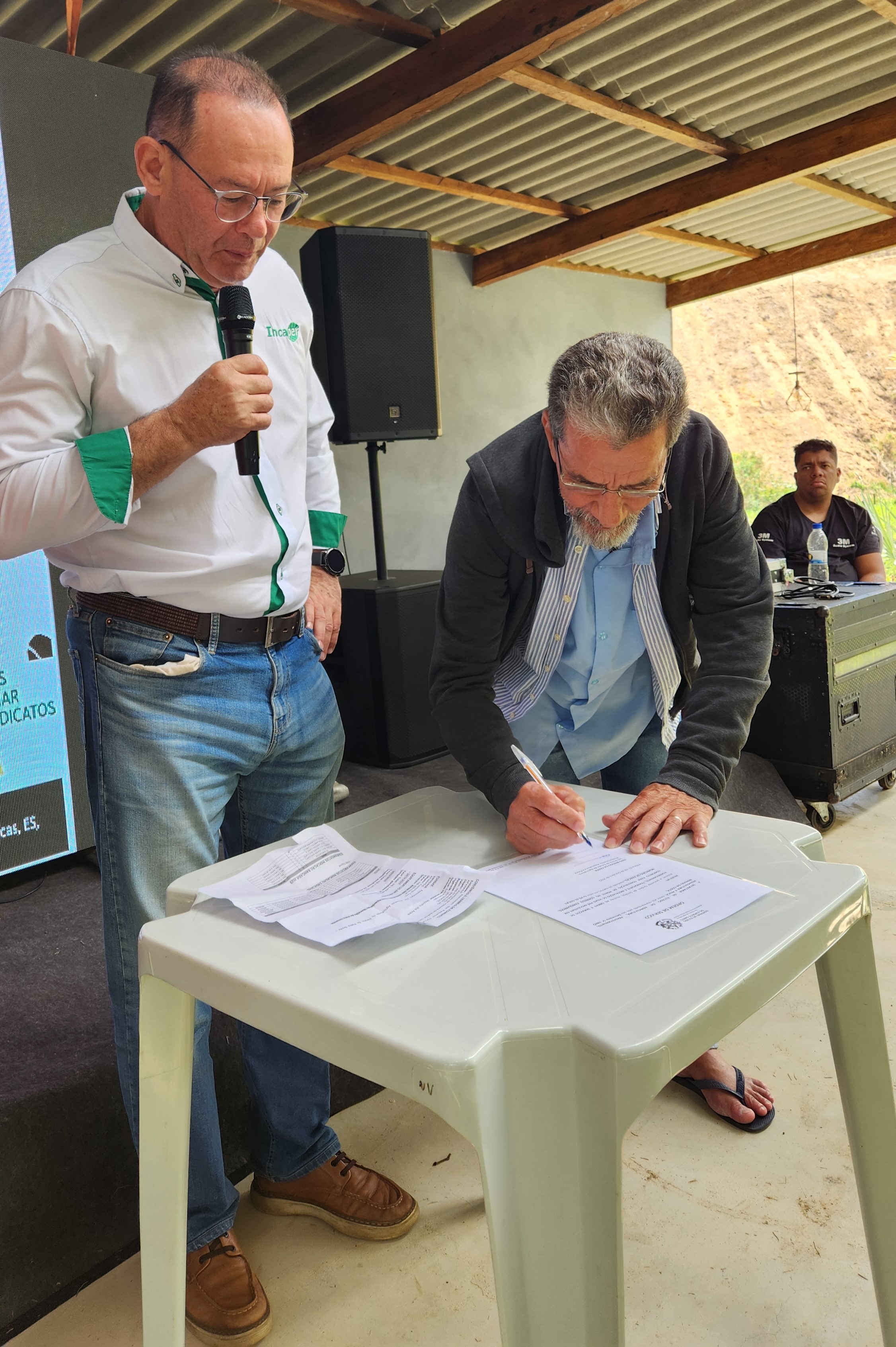 Nesta sexta-feira (03), o secretário de Estado da Agricultura, Abastecimento, Aquicultura e Pesca, Enio Bergoli, assinou a Ordem de Serviço para a construção da ponte sobre o Córrego Panquinhas, em Pancas. A obra será realizada dentro do Programa de Pontes Rurais, iniciativa do Governo do Estado que disponibiliza vigas de concreto para os municípios, visando melhorar a mobilidade no campo e assegurar o escoamento da produção agrícola.