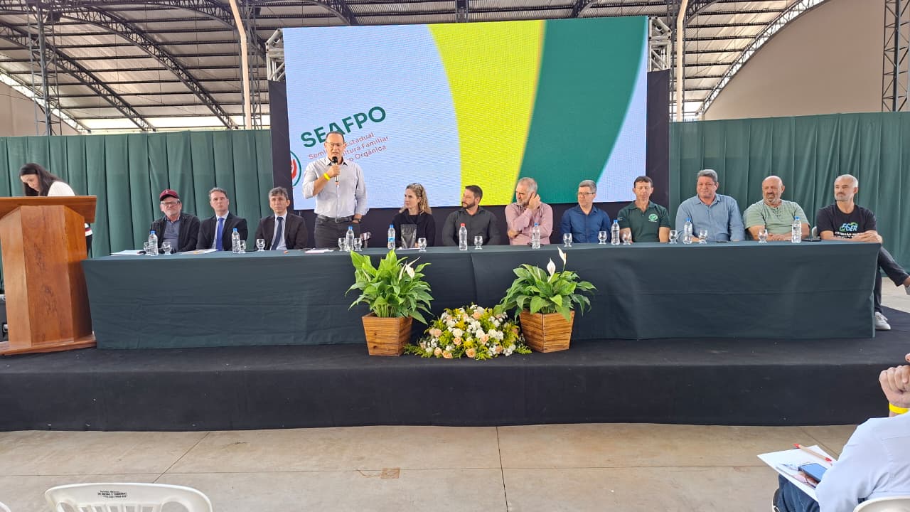O secretário de Estado da Agricultura, Enio Bergoli, esteve presente no seminário e destacou o papel da agricultura familiar e da produção orgânica na construção de um modelo de desenvolvimento sustentável e inclusivo.