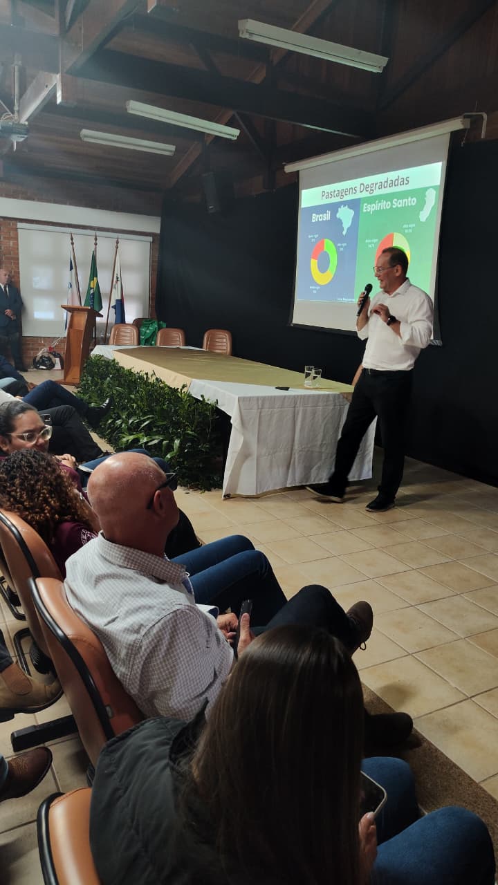 Um dos destaques do primeiro dia foi a palestra “Onde estamos e para onde vamos: A jornada da pecuária no Espírito Santo”, ministrada pelo secretário de Estado da Agricultura, Enio Bergoli. Durante a apresentação, o secretário traçou um panorama da produção pecuária capixaba, destacando os avanços obtidos nos últimos anos e as ações estratégicas em andamento para fortalecer o setor e ampliar sua competitividade.