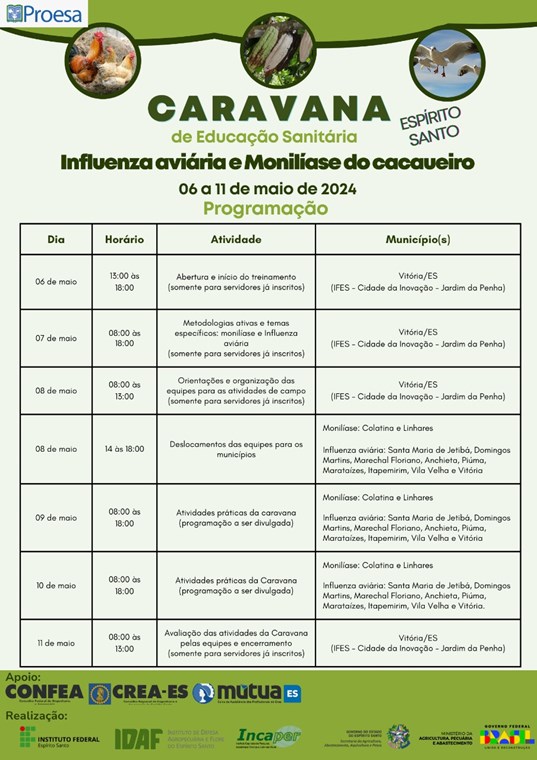 Espírito Santo recebe caravana de Educação Sanitária para combater influenza aviária e monilíase do cacau