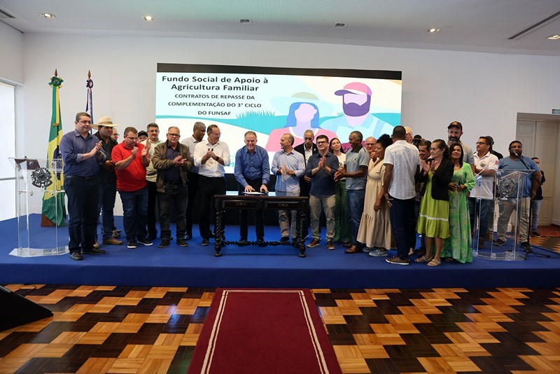 O Governo do Estado, por meio da Secretaria da Agricultura, Abastecimento, Aquicultura e Pesca (Seag), assinou, na manhã desta quinta-feira (23), os contratos dos últimos 20 projetos aprovados pelo 5º Edital do Fundo Social de Apoio à Agricultura Familiar (Funsaf). A solenidade foi realizada no Palácio Anchieta, em Vitória, com a presença do governador Renato Casagrande, além de prefeitos, lideranças rurais e representantes de cooperativas e associações beneficiadas.