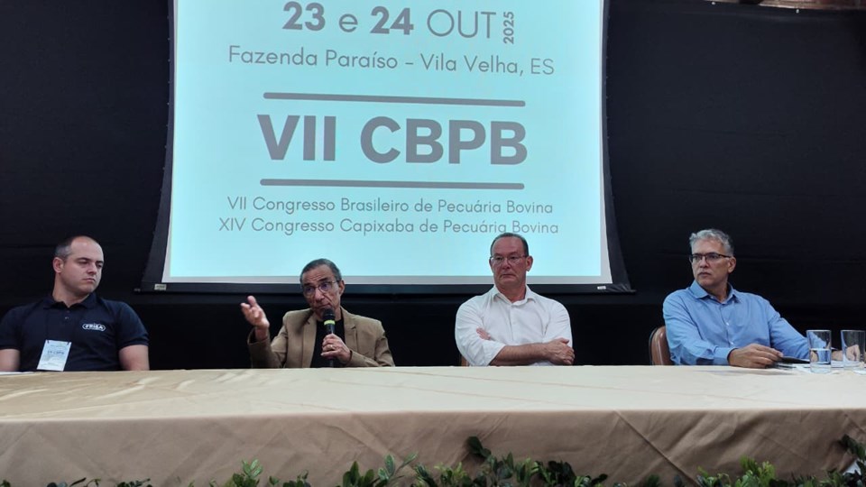 A Secretaria da Agricultura, Abastecimento, Aquicultura e Pesca (Seag) participou, nesta quinta-feira (23), da abertura do VII Congresso Brasileiro de Pecuária Bovina, realizado na Fazenda Paraíso, em Vila Velha. O evento segue até sexta-feira (24), reunindo produtores, técnicos, pesquisadores e estudantes interessados no avanço da pecuária de corte e leiteira.