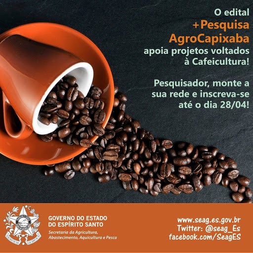 Disponível em www.fapes.es.gov.br e www.seag.es.gov.br, e com recursos da ordem de R$ 14 milhões, o Edital +Pesquisa AgroCapixaba, do Governo do Estado, por meio da Seag e Fapes, vinculada à Secretaria de Estado de Ciência, Tecnologia, Inovação e Educação Profissional (Secti), é considerado o maior da história da agropecuária do Espírito Santo. Outra novidade é que os projetos precisam, necessariamente, serem desenvolvidos em Rede. Cada Rede de pesquisa terá um coordenador e será composta, por no mínimo, três projetos, cada qual com um coordenador distinto.